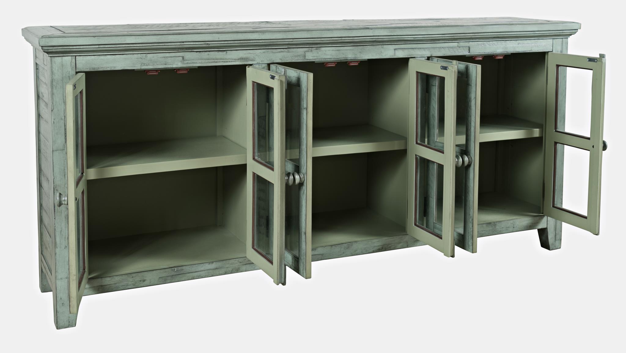 Detale: regulowana wysokość półek;szkło hartowane 4mm;przetarcia shabby chic
