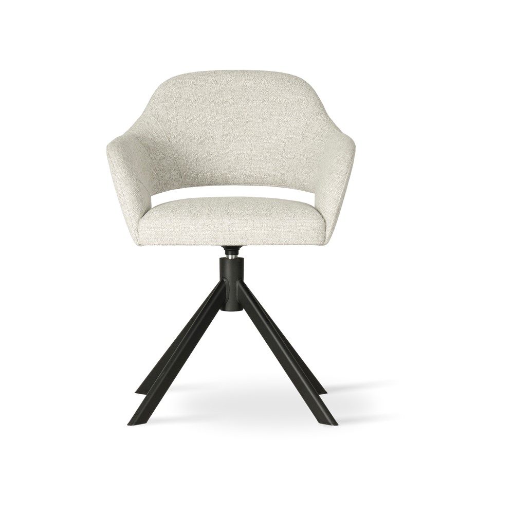 Krzesło obrotowe FIBI to minimalistyczne krzesło tapicerowane o smukłej, subtelnej formie, idealne do nowoczesnych wnętrz. Lekkie wycięcie między siedziskiem a oparciem nadaje bryle wizualnej lekkości, a podłokietniki podkreślają ergonomiczny charakter. Siedzisko wypełnione pianką zapewnia komfort i odpowiednie podparcie.
