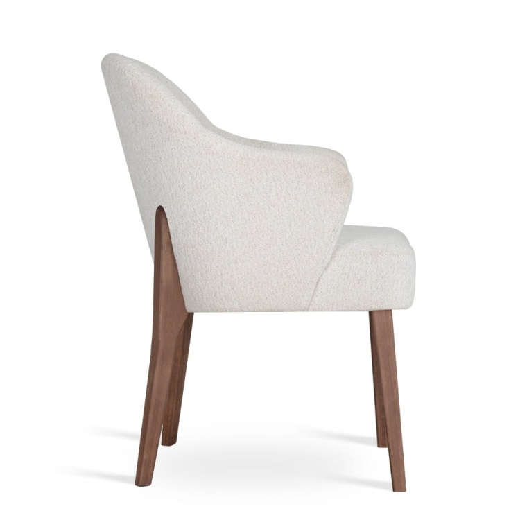 Krzesło osadzone jest na stelażu z litego drewna bukowego, dostępnym w wielu wybarwieniach. Smukłe nogi oraz eleganckie przejście tylnej nogi w oparcie nadają bryle lekkości i wyjątkowego charakteru.