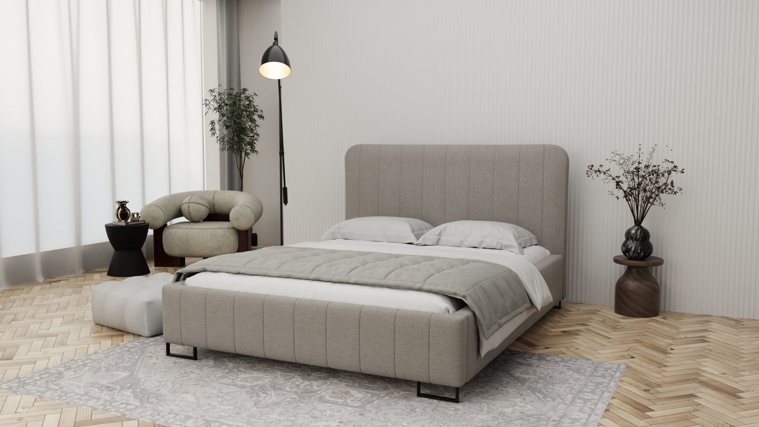 Łóżko Vela to model, który łączy nowoczesny design z wyjątkową elegancją. Tapicerowane wezgłowie z pionowymi przeszyciami i delikatnie zaokrąglonymi krawędziami daje wrażenie spokoju i miękkości od pierwszego wejrzenia. Vela wyróżnia się minimalizmem, dzięki któremu doskonale wpisuje się w różne aranżacje wnętrz – od klasycznych po nowoczesne. To idealna propozycja dla osób ceniących prostotę, funkcjonalność i estetykę.